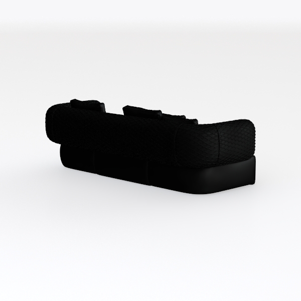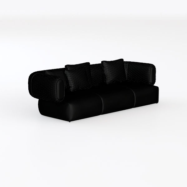 This striking couch draws inspiration from contemporary architectural design, featuring a bold and angular silhouette that effortlessly commands attention. Its textured upholstery, embellished with a diamond pattern, not only adds a tactile dimension but also enhances its visual intrigue, making it a conversation starter in any setting.