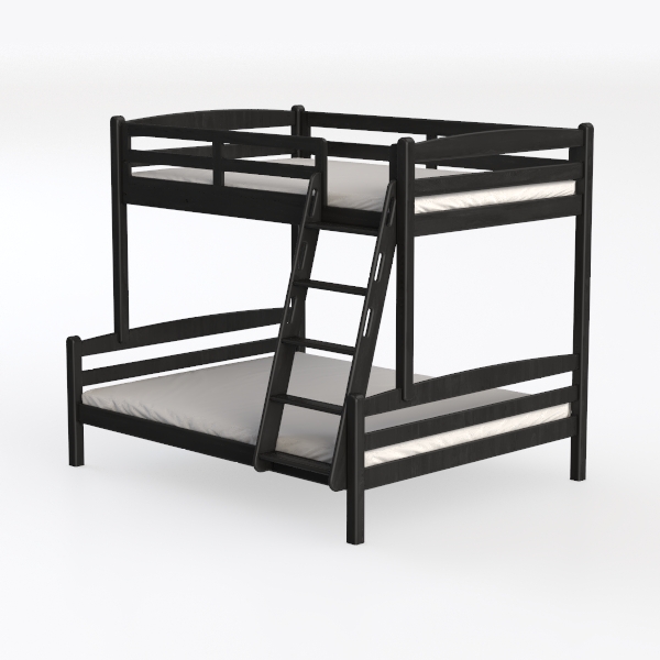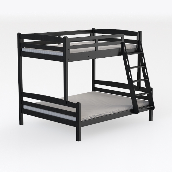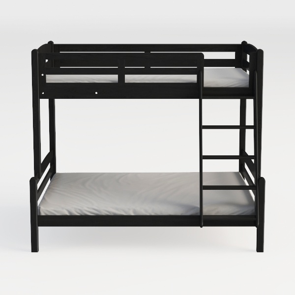 This bunk bed draws inspiration from the balance of practicality and elegance, born from a desire to create a piece that works hard in small spaces while remaining visually striking. Its frame, crafted with clean, straight lines, features a smooth, matte black finish that catches light softly, avoiding harsh glints and instead offering a sense of calm. The wood feels cool and solid to the touch, with gently rounded edges that ensure safety—no sharp corners to worry about, whether for curious kids or frequent use. Visually, the design is anchored by balanced proportions: tall, sturdy side rails that feel secure, a low footboard that keeps the look open, and a ladder integrated seamlessly into the structure, avoiding clutter.