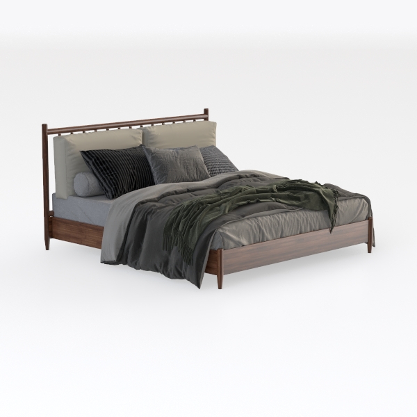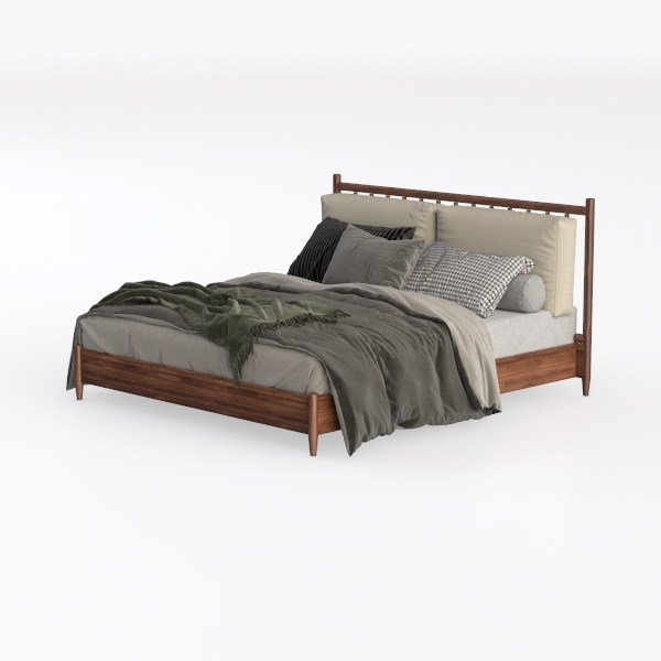 This bed merges natural warmth with minimalist sophistication, drawing design inspiration from the serene interplay of Scandinavian simplicity and Japanese wabi-sabi philosophy. Crafted from rich, warm-toned solid wood, its frame features smooth, visible grain patterns that infuse the space with organic character, while the soft, textured upholstered headboard adds a cozy, tactile contrast—its neutral beige hue complementing the wood’s earthy tones. Clean, uncluttered lines define the silhouette, avoiding excess decoration to create a calm, unobtrusive presence that lets the bed take center stage as a peaceful retreat.