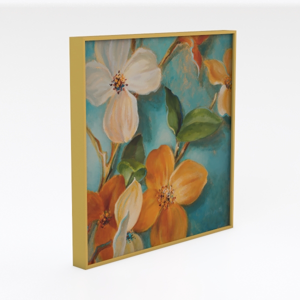 Arjun Flower Wall Art Floral Canvas Painting Teal White Gold Textured Picture Vintage Bloosom Artwork Large Framed for Living Room Bedroom Bathroom Dinning Room Kitchen Home Office Wall Decor, 40"x20"