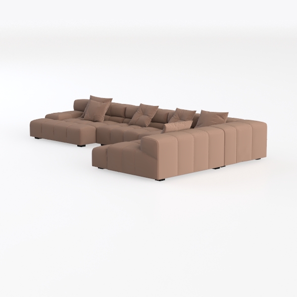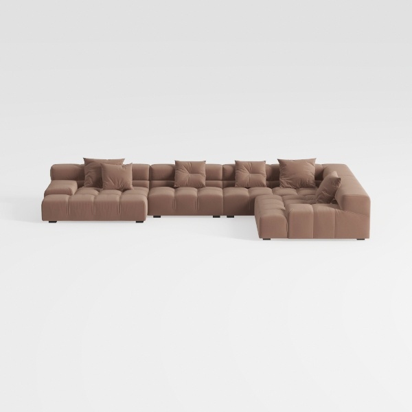 Introducing a stunning sectional sofa that redefines modern living. Inspired by contemporary Italian design, this piece boasts clean lines and a minimalist aesthetic, perfect for any chic home. The soft, supple upholstery in a warm taupe hue adds a touch of elegance while maintaining a cozy feel, inviting you to sink into its plush cushions.