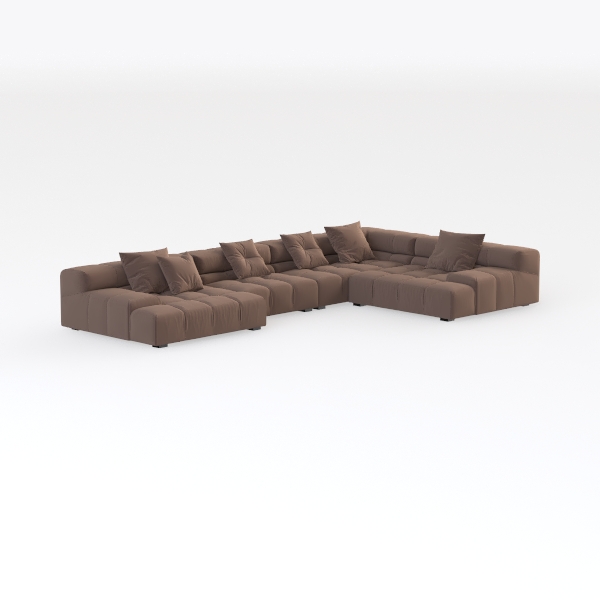 Meridian Furniture 101Brown-S6C Arc Collection Modern | Contemporary Modular Sofa with Soft Brown Vegan Leather, Deep Channel Tufting, Modular Design, 146" W x 76" D x 30" H, Brown