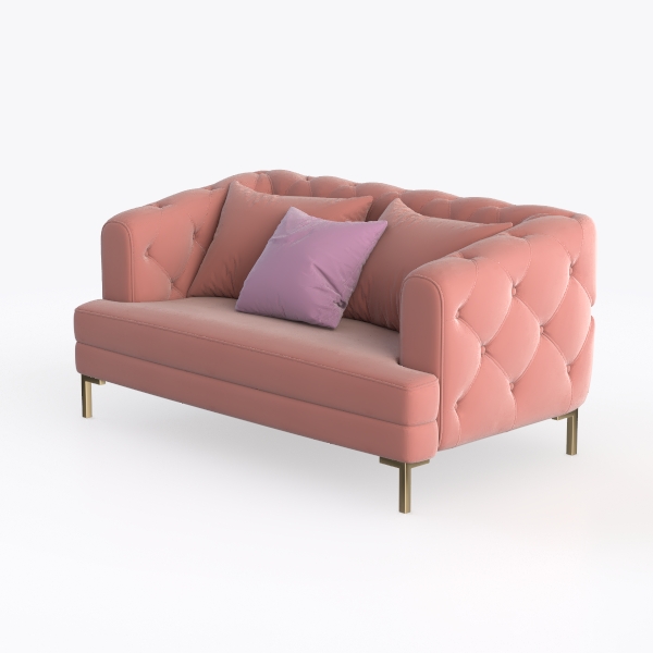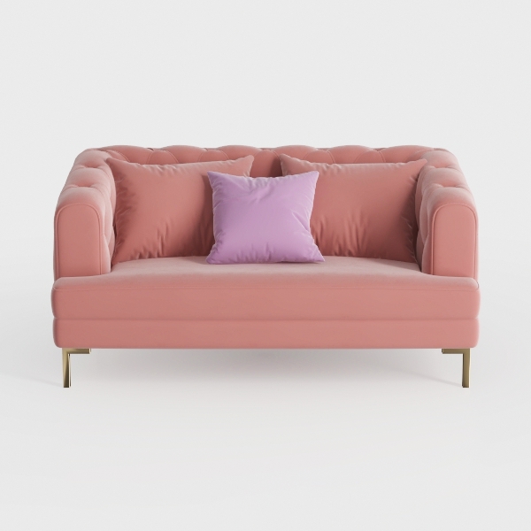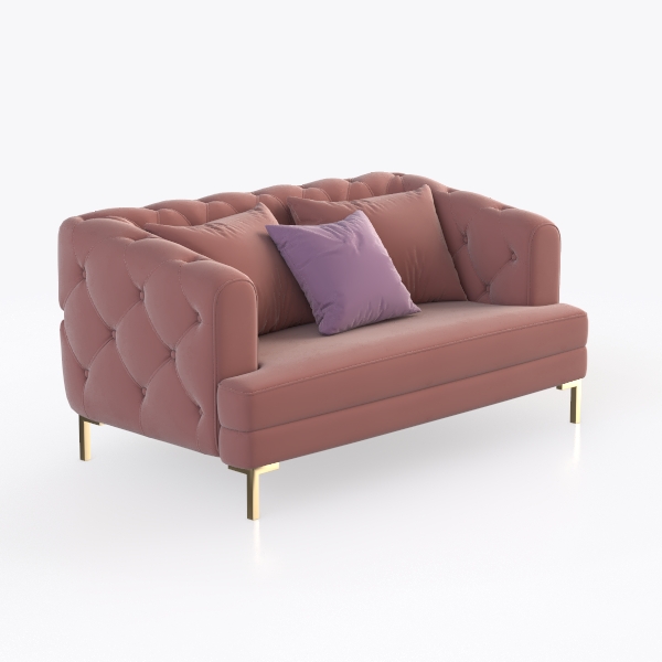 Introducing an exquisite piece that embodies modern elegance, this charming sofa offers a warm blush tone that radiates a sense of comfort and style. Its sumptuous upholstery, featuring plush cushions and a classic tufted design, invites you to sink in and unwind. The soft fabric provides a tactile sensation that enhances relaxation, while the sleek, metallic legs add a contemporary touch, creating a perfect balance of vintage charm and modern sophistication.