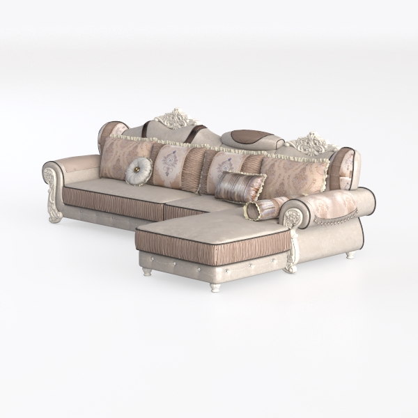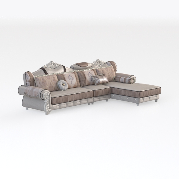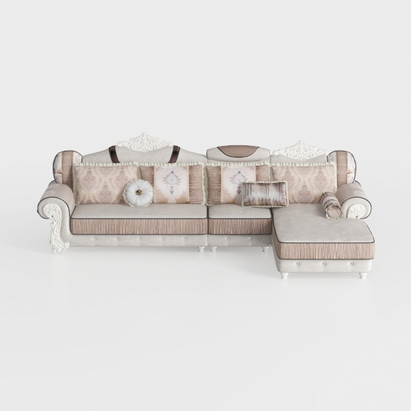 Inspired by classic aristocratic design, this exquisite sofa brings a touch of elegance to any living space. The soft, plush fabrics offer a sumptuous feel, inviting you to sink into its embrace. With a harmonious blend of neutral tones and intricate detailing, the visual appeal is captivating, enhanced by the ornate carvings on the armrests and backrest that reflect a commitment to craftsmanship.