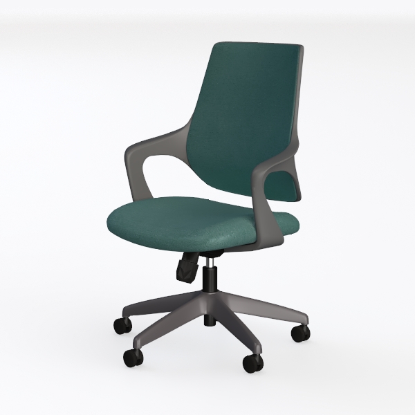 The seat and backrest feature a rich teal upholstery with a subtle, textured surface that invites gentle contact—soft yet with enough grip to maintain posture during extended use. The frame, in a muted gray hue, has a smooth, slightly matte finish, its angular yet flowing lines creating a modern silhouette that avoids clutter. The contrast between the warm teal and cool gray adds visual depth, while the overall lack of ornate details keeps the focus on clean, intentional form.