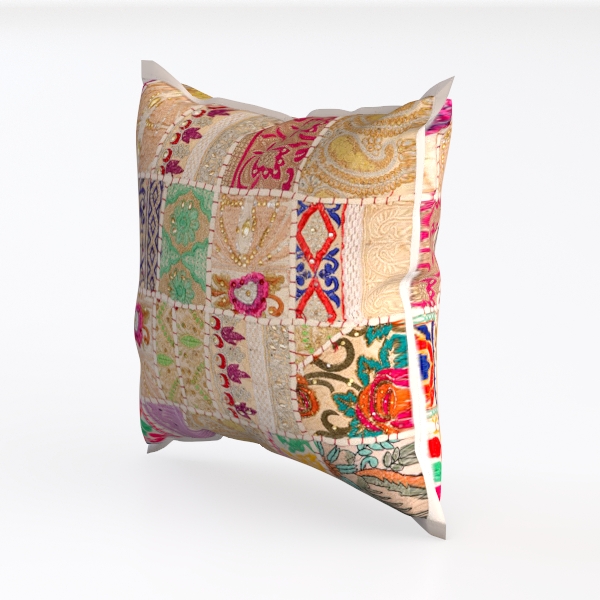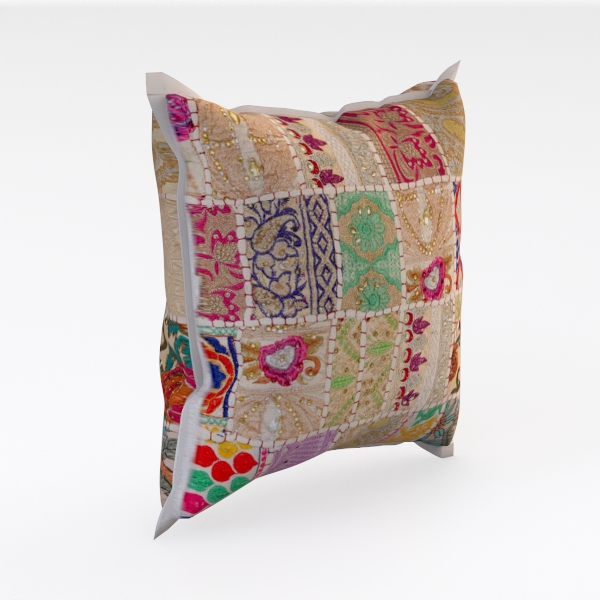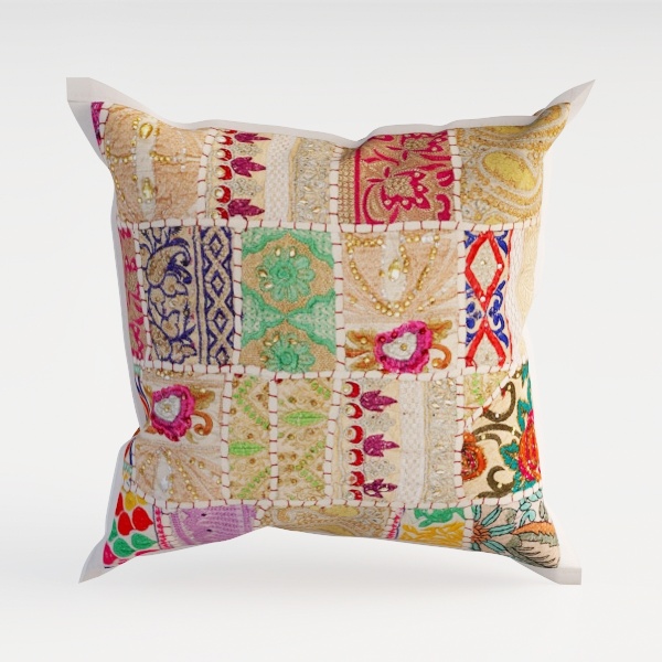 Indian Handmade Cotton Yellow Kantha Fruit Print Threads Work Cushion Cover Throw Pillow Cases Decorative Pillows Cover Bohemian 16x16 Inches