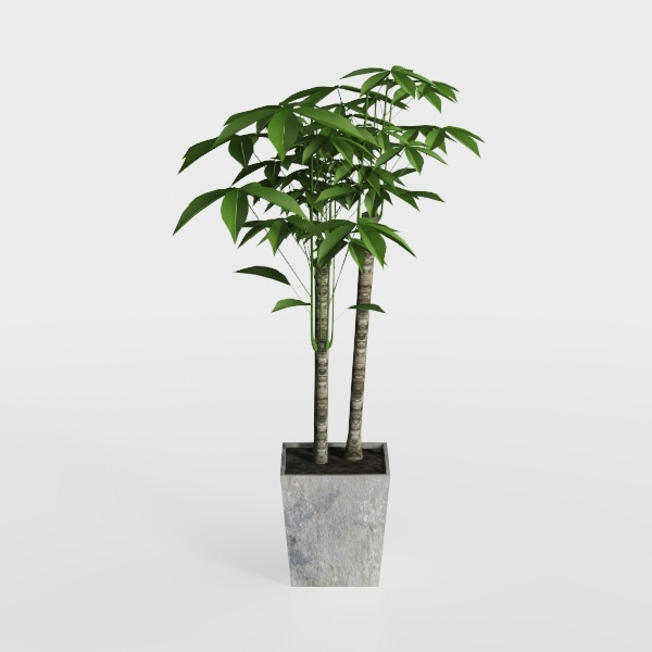 This indoor plant piece draws inspiration from the seamless fusion of wild greenery and structured interior design, aiming to bring the tranquility of nature into modern living spaces. Its dual-trunked form, with each stem showcasing subtle, textured bark patterns, mimics the organic growth of mature trees, while the canopy of vibrant, oval-shaped leaves—glistening with a fresh, healthy sheen—adds a lush, dynamic layer. The leaves, arranged in a balanced, upward-reaching manner, create a sense of verticality, softening the硬朗线条 of minimal or contemporary decor.
