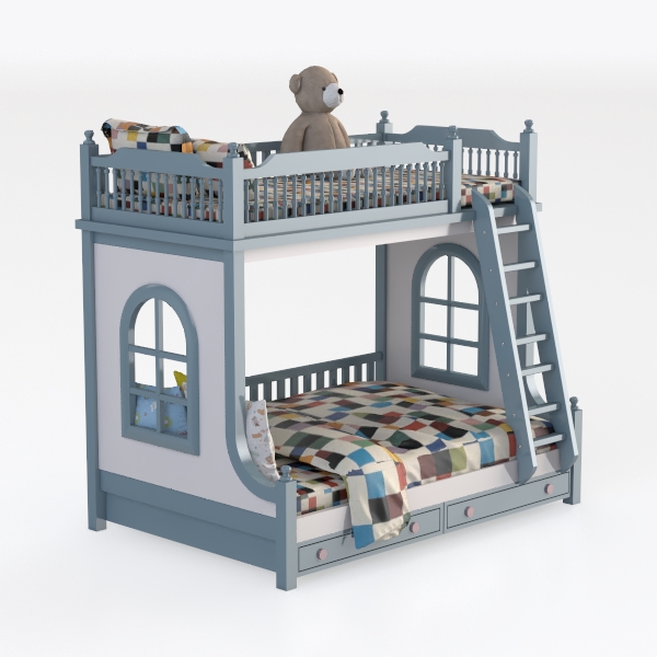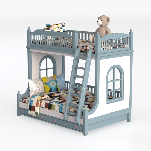 Designed to blend functionality with warmth, this charming bunk bed embodies the essence of family-oriented comfort, perfect for creating a cozy corner in a child’s room. Inspired by the joy of shared spaces and the beauty of childhood simplicity, its soft blue frame and playful details evoke a sense of security and nostalgia, making it more than just furniture—it’s a canvas for imagination.