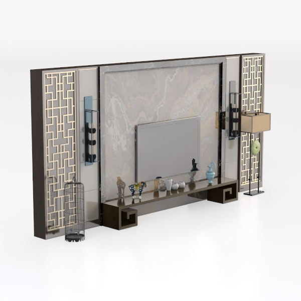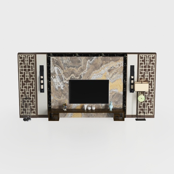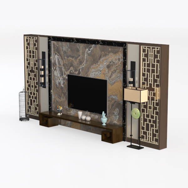 This home decor piece draws inspiration from the delicate interplay of traditional东方 architectural details and modern minimalist aesthetics. The centerpiece is a large, flowing marble panel with rich taupe, gray, and amber veining, mimicking the organic patterns of natural stone, while the side panels feature intricate geometric lattice designs in warm dark wood—echoing classic东方窗棂 motifs but refined with clean lines for contemporary spaces.