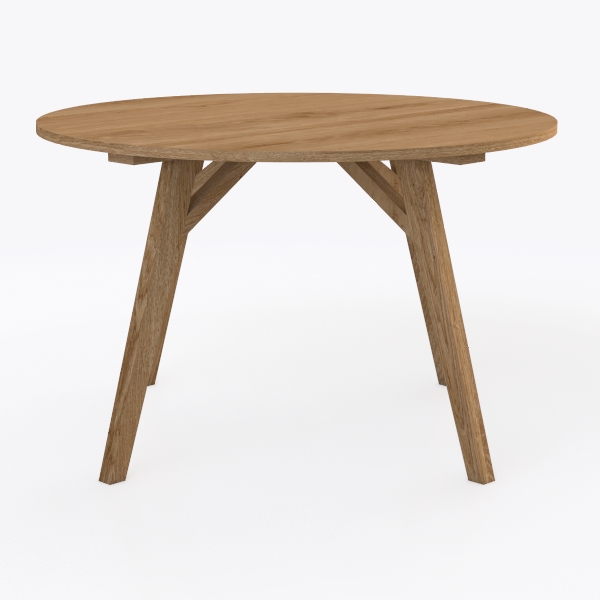 Rooted in Scandinavian design philosophy, this table draws inspiration from the serene beauty of natural landscapes and the pursuit of uncluttered functionality. Crafted from solid oak with a smooth, sanded finish, its circular tabletop showcases the wood’s inherent grain—subtle, flowing patterns that evoke the organic rhythm of forests. The surface feels warm and inviting, with a gentle matte texture that balances sleek modernity and tactile comfort; light, honeyed tones reflect soft light, infusing any room with a calm, earthy glow.