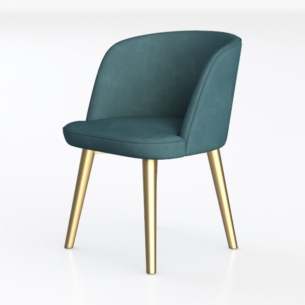 The design of this chair merges vintage charm with contemporary simplicity, inspired by the interplay of nature’s earthy hues and refined craftsmanship. Its visual allure lies in the deep teal upholstery, which shimmers softly like polished velvet—rich yet not overwhelming, creating a warm, inviting glow. The fabric feels luxuriously smooth to the touch, yielding gently to the body and promising comfort during long hours of use. Complementing this softness are the slender, gold-toned metal legs, which feature a matte finish that catches light subtly, adding a touch of understated elegance. Their tapering lines and geometric precision balance the chair’s rounded silhouette, avoiding bulk and enhancing its lightweight, airy presence.