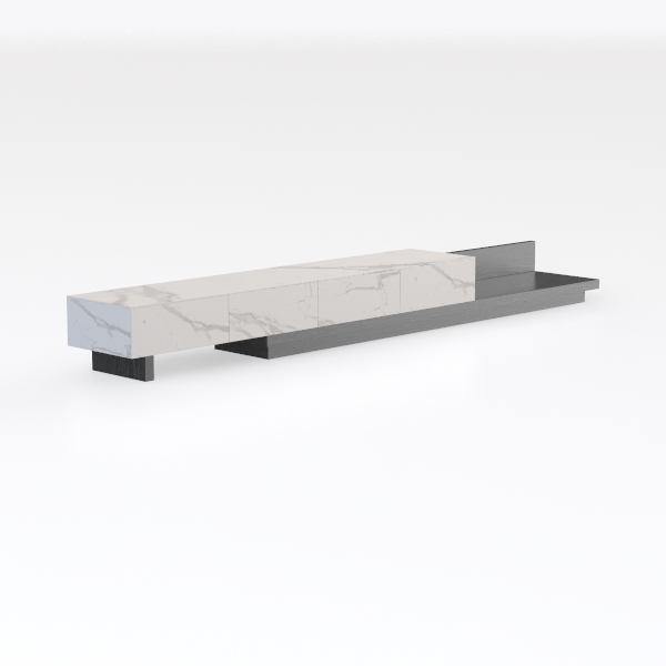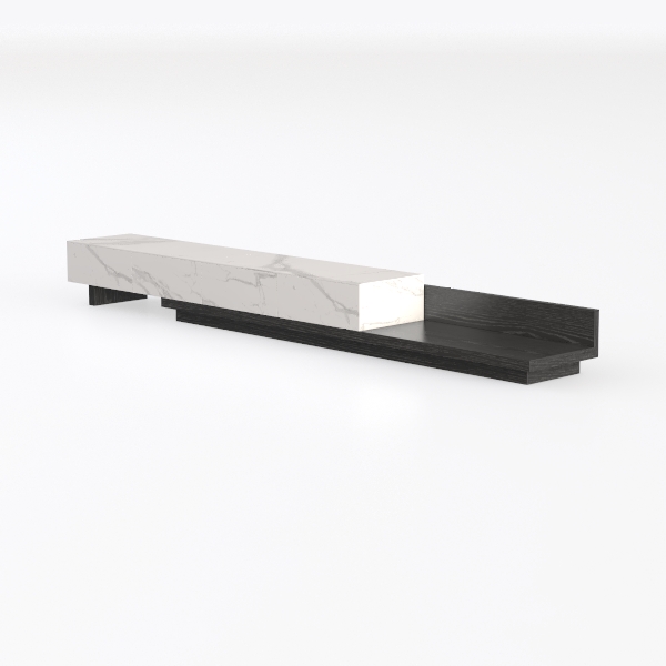 This elegant console unit, likely a media stand or sideboard, draws design inspiration from the quiet dialogue between natural textures and architectural minimalism. Its form merges the organic softness of stone with the earthy warmth of wood, creating a piece that feels both timeless and contemporary.