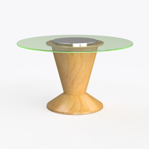 Functionality meets form here: the circular tabletop offers ample space for meals, gatherings, or work, with a stable, tapering base ensuring durability and easy movement around it. A polished metal ring at the center adds a subtle, functional touch—perfect for placing a small centerpiece or lamp, elevating both the look and usability. Overall, this table is a timeless blend of elegance and practicality, designed to enhance any living space with warmth and style.