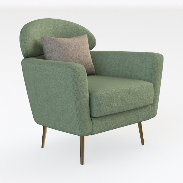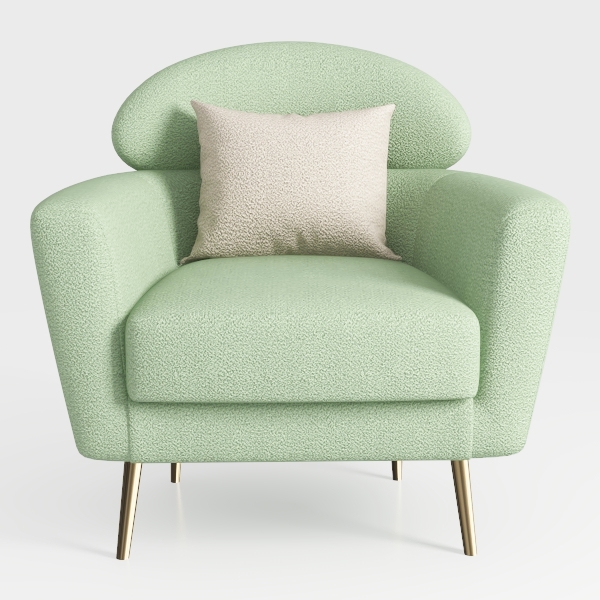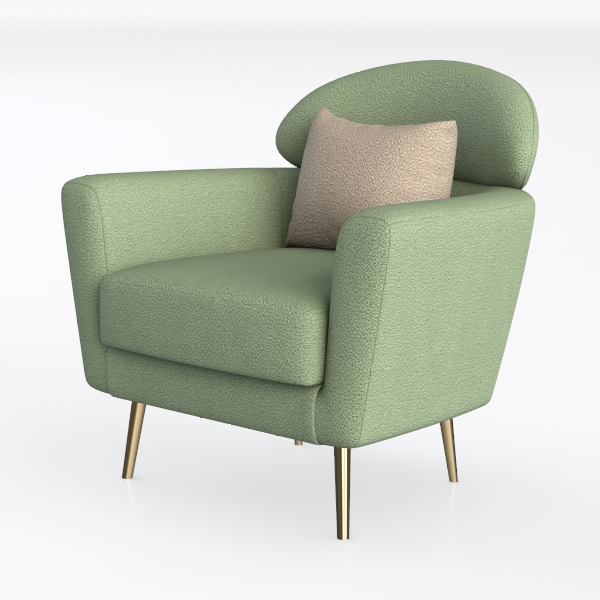 The design of this armchair draws inspiration from the soft, earthy tones of emerging spring foliage, blending warmth with a sense of calm. Crafted with a plush, bouclé-like fabric, it invites gentle touches—soft to the hand and surprisingly durable, holding up to daily use while retaining its inviting texture. The muted sage green hue creates a serene focal point, its rounded, organic silhouette softening any room it occupies with its approachable, non-angular lines.