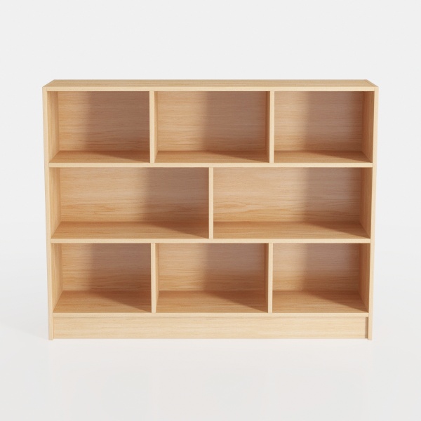 Designed with a blend of minimalist functionality and natural warmth, this wooden shelf features a smooth, warm oak texture. Its clean lines and light, airy structure exude timeless charm. Ideal for a cozy Scandinavian living room or sleek modern study, pair it with potted plants, vintage books, or geometric decor. Spacious compartments offer ample storage for books, decor, or small items, while a sturdy base ensures stability.