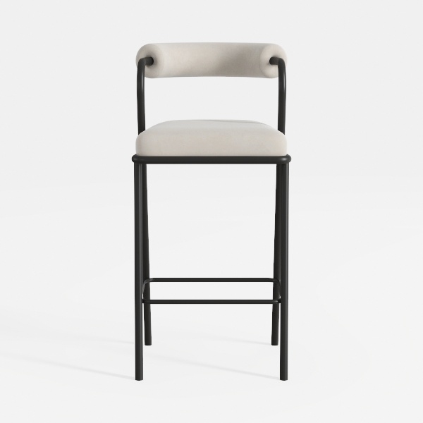Inspired by mid-century modern minimalism, this bar stool blends a sleek black metal frame with plush, creamy upholstery. Its curved backrest adds soft visual appeal, while the padded seat offers cozy support. Ideal for a modern kitchen island or dining nook, it merges Scandinavian simplicity with functional comfort, ensuring stability and style in any space.
