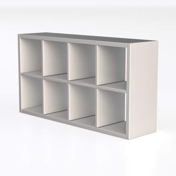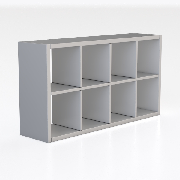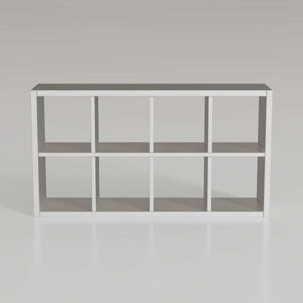 Inspired by minimalist design for clean lines and functional space, this shelving unit features a sleek white frame contrasting soft gray shelves. Smooth, angular surfaces add tactile appeal, with a calm, uncluttered look suiting modern, Scandinavian, or minimalist living rooms, bedrooms, or home offices. Paired with potted plants or framed photos, it adds subtle warmth, while the double-tiered design with 4 compartments per level offers ample storage, keeping items organized.
