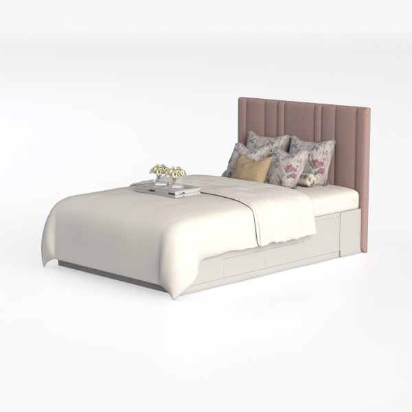 Inspired by soft petal tones and mid-century charm, this bed features a velvety pink headboard contrasting crisp white linens. Delicate floral pillows and mustard lumbar add textural depth; smooth, uncluttered surface feels elegant, cozy. Perfect for serene bedrooms—ideal for modern minimalist or Scandi-nordic, pairing wooden nightstands, potted greenery. Plush headboard offers gentle back support, ensuring relaxed, restful sleep.