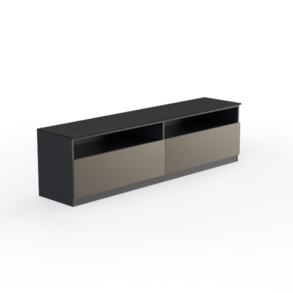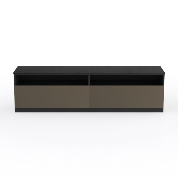 Inspired by minimalist design, this low-profile cabinet features a smooth matte black top and warm brown lower panels, creating a sleek, balanced look. Its clean lines and neutral tones blend effortlessly with modern living spaces, complementing both monochrome and earthy decor. Spacious enough for media gear or storage, it adds functionality without cluttering, making it a versatile choice for contemporary homes.