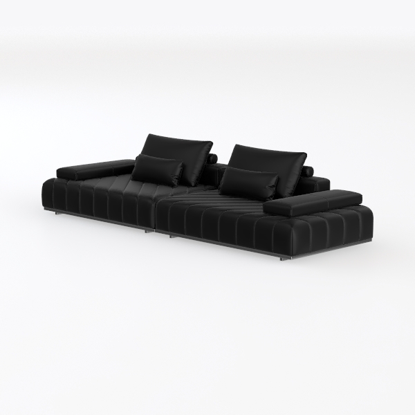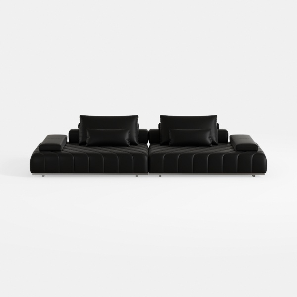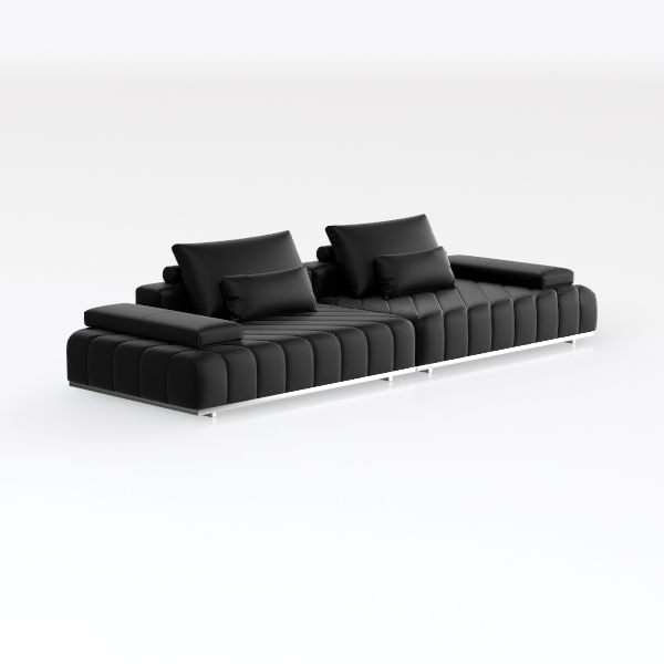 Inspired by the fusion of architectural minimalism and functional artistry, this sofa embodies a design philosophy rooted in intentional simplicity. Its exterior features a smooth, high-quality leather-like surface that feels cool and luxuriously soft to the touch, while subtle, evenly spaced channeled stitching runs along the back and seat, creating a rhythmic pattern that catches light without being overly ornate. Supported by thin, polished metal legs, the low-profile frame floats slightly above the floor, enhancing the sense of openness in any room.