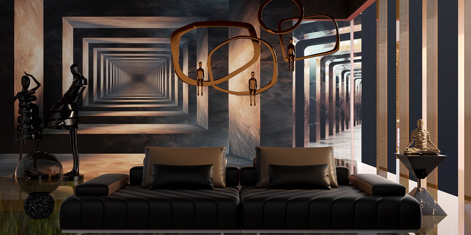 Perfect for a modern minimalist or contemporary luxury living space, it pairs effortlessly with marble coffee tables, metallic floor lamps, and warm-toned walls—think off-white, soft gray, or matte black—to balance its bold black hue. Even a touch of gold or brass accents, like decorative throw pillows or a sleek wooden sideboard, elevates the aesthetic, making it versatile for both formal and casual settings.