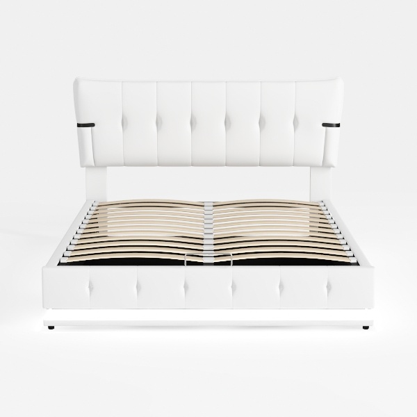 Inspired by timeless elegance and clean modern lines, this bed features sleek white upholstery with tufted details creating a soft yet structured look. Smooth surfaces and subtle curves enhance visual warmth, ideal for minimalist, contemporary, or soft Scandinavian spaces. Under-bed storage drawers offer practical space for clutter-free living, balancing style with utility, pairing beautifully with wooden nightstands and soft linen bedding.