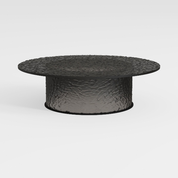 Inspired by industrial minimalism, this metal coffee table blends raw texture with clean lines. Its textured black surface, matte finish, exudes rugged elegance. Ideal for modern industrial or Scandinavian living rooms, pairing beautifully with leather sofas and geometric rugs. A sturdy base ensures stability, while the smooth top offers ample space for drinks and decor.