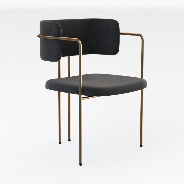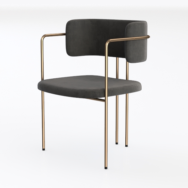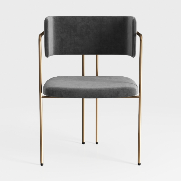 Designed with mid-century modern influences, this chair blends soft textures with sleek lines. Plush velvet upholstery in warm gray feels inviting, while the brushed brass frame adds luxury, balancing comfort and elegance. Ideal for a contemporary dining room or minimalist living space, pairing beautifully with wooden tables and marble accents. A generous seat depth ensures all-day comfort, with sturdy metal legs for stable support.