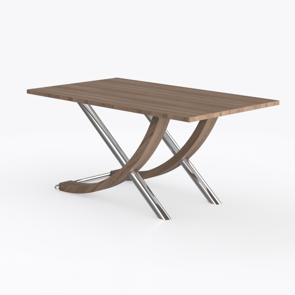 Inspired by organic curves and architectural minimalism, this table features a smooth, warm oak top with tactile grain and sleek, polished metal cross-legs. Its light wood and metal contrast creates an airy, modern vibe, ideal for a living room or home office. Sturdy cross-leg design ensures stability, while the spacious top offers ample room for daily use, pairing seamlessly with neutral sofas and geometric decor.