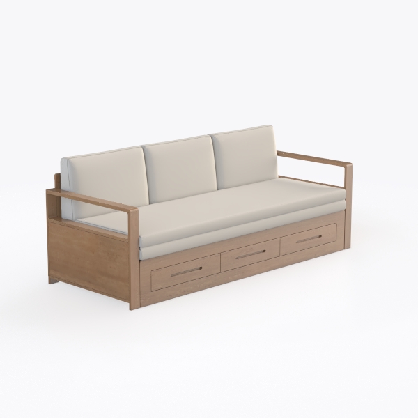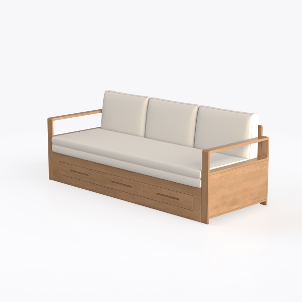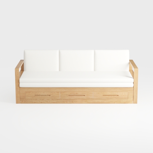 Beyond aesthetics, the sofa prioritizes practicality: deep, smoothly sliding drawers beneath the seat provide hidden storage for blankets, throw pillows, or seasonal items, keeping the living space tidy without disrupting its clean look. Its generous seat depth ensures optimal comfort—whether for unwinding with a book or hosting friends—making it a versatile centerpiece that balances style and daily usability.