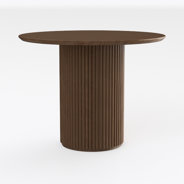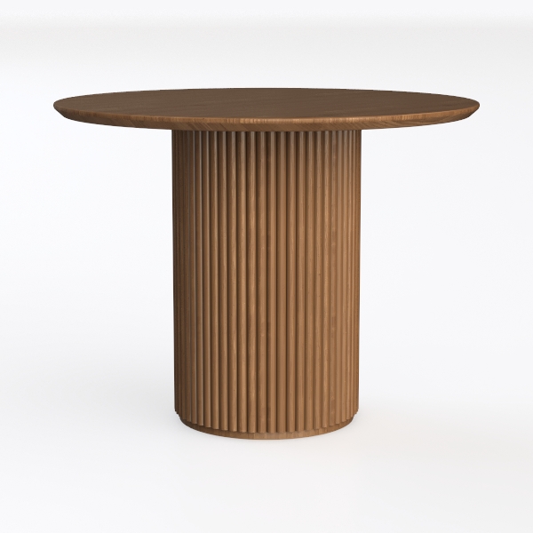 Inspired by the interplay of natural and geometric forms, this wooden table showcases a warm, smooth round top with delicate vertical ridges on its cylindrical base, delivering a soft, natural tactile feel and visual flow that connects to nature. Its ample surface suits family meals or gatherings, while the sturdy base ensures stability, perfect for modern dining rooms or living areas. Pairs beautifully with minimalist or mid-century chairs and potted greenery, blending functionality and aesthetic to elevate any room’s charm.