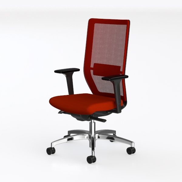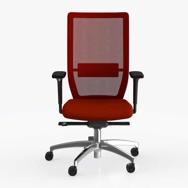Designed with minimalist ergonomics, this office chair blends function and style. Breathable mesh back ensures air flow, soft red seat and black armrests deliver comfort. Sleek silhouette and vibrant red hue add boldness. Ideal for modern offices or home studies; pair with wooden desks and metallic accents. Adjustable height and smooth casters for easy movement, high back offers great lumbar support.