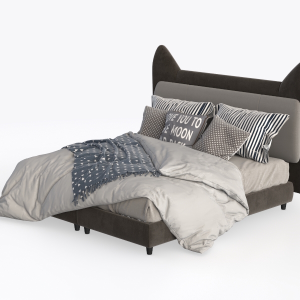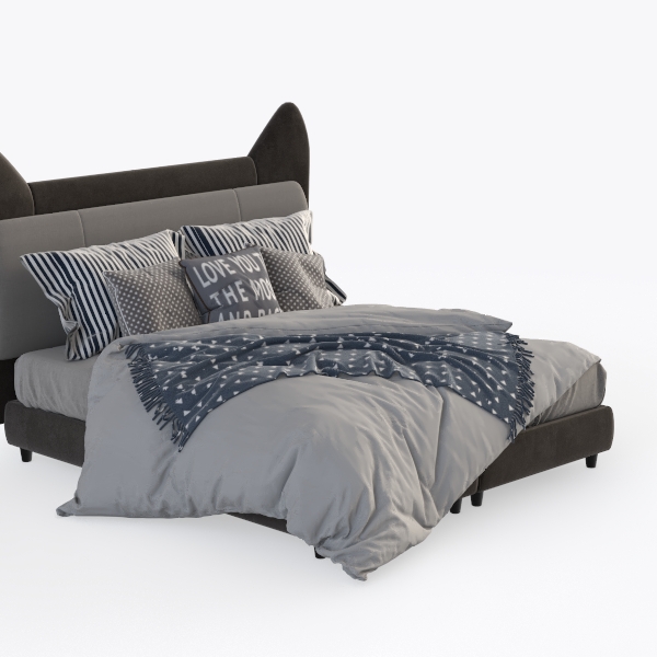 Drawing inspiration from playful animal silhouettes, the bed features a headboard with soft, curved edges that add a whimsical charm. The velvet headboard invites gentle touches, while light gray and white bedding, paired with a bold blue geometric throw, creates a cozy, stylish vibe. Perfect for a kids’ room or modern playful bedroom, it complements wooden nightstands and fairy light decor. Sturdy yet lightweight, the low-profile frame ensures easy movement, and the generous bed space offers a restful, cloud-like sleep experience.