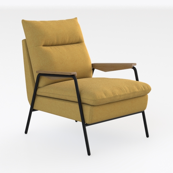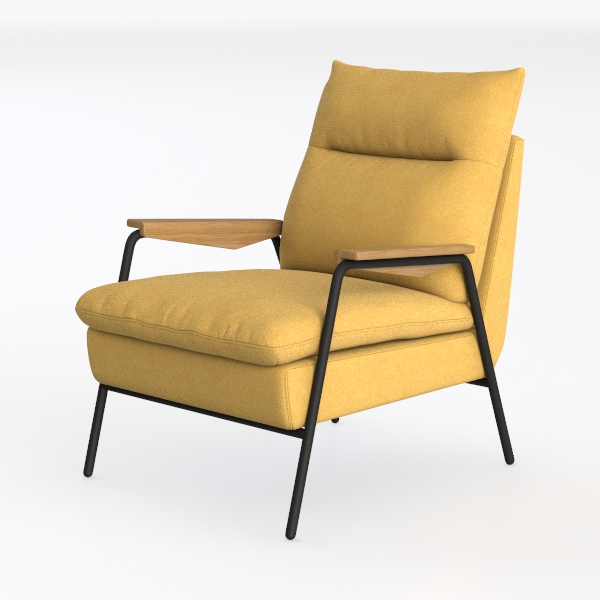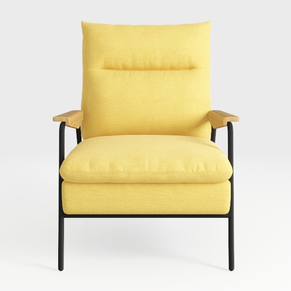 Inspired by natural serenity, the armchair features soft, textured yellow upholstery—warm and inviting. Warm wooden armrests and a sleek black metal frame create elegant contrast, blending softness with structure. Ideal for modern minimalist living rooms or studies, it pairs beautifully with marble side tables and neutral rugs. Plush, deep cushions offer exceptional comfort, with ergonomic armrests providing gentle support.