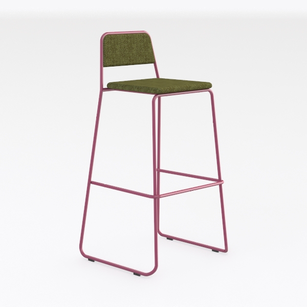 Drawing inspiration from mid-century modern minimalism with a playful twist, this bar stool blends retro charm and contemporary flair. The smooth, matte pink metal frame contrasts beautifully with the soft, textured olive-green upholstery, creating a warm, inviting look that feels sturdy yet comfortable. Ideal for a sleek kitchen island or cozy bar corner, it pairs with marble and wood, enhancing modern bohemian or Scandinavian spaces. A stable base and ergonomic seat ensure all-day comfort for meals or chats.
