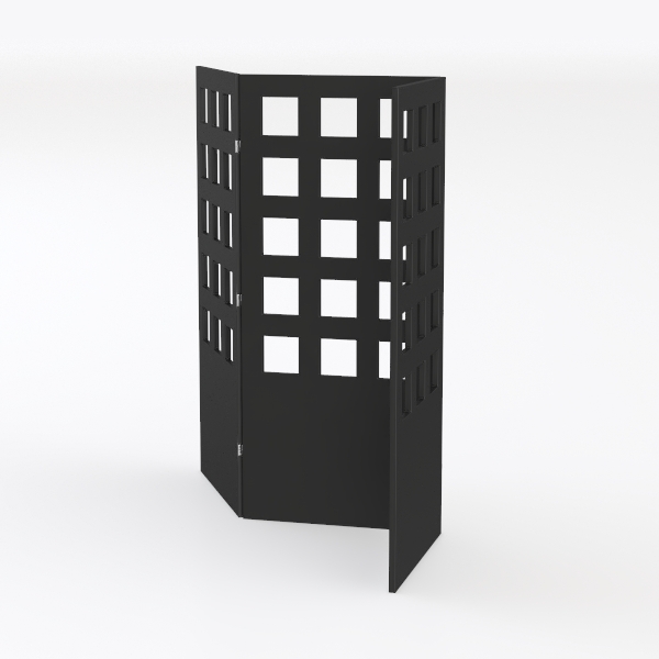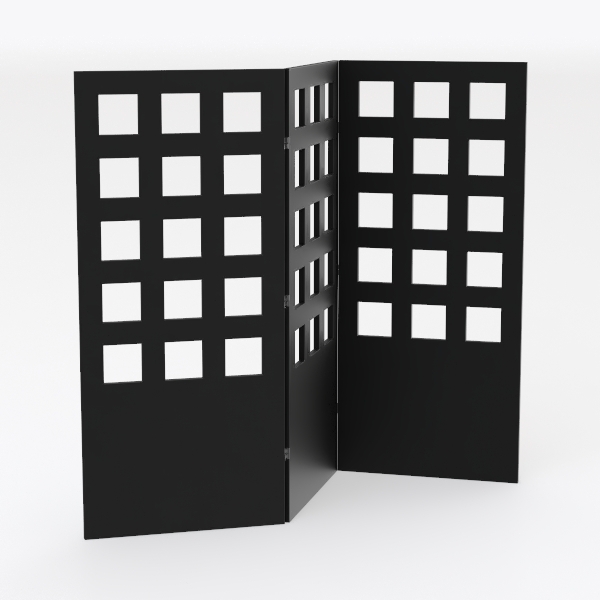 Inspired by architectural grid patterns, this black room divider features crisp white cutouts, blending sleek matte texture with airy lightness. Its tri-fold design flexibly partitions spaces, ideal for modern minimal, Scandinavian, or industrial styles—pair with neutral furniture for a balanced, elegant look, while maintaining transparency and privacy.