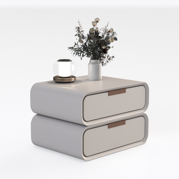 Inspired by minimalist design, blending clean lines with warm, organic elements. Its smooth matte white surface has a subtle texture, while warm copper handles add soft contrast and elegance. Ideal for a modern minimalist or Scandinavian bedroom, pairing beautifully with soft textiles and warm-toned walls. Two spacious drawers offer ample storage, balancing functionality with sleek, uncluttered aesthetics.