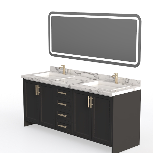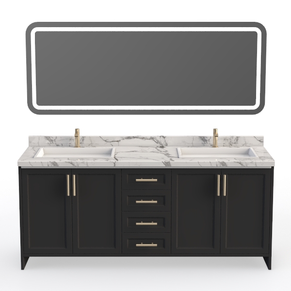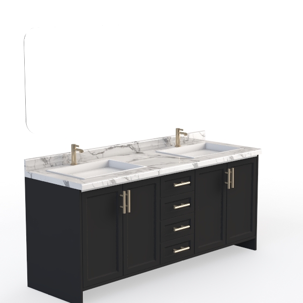 Marlena 72" Double Vanity with optional Quartz or Carrara Marble Counter - Black