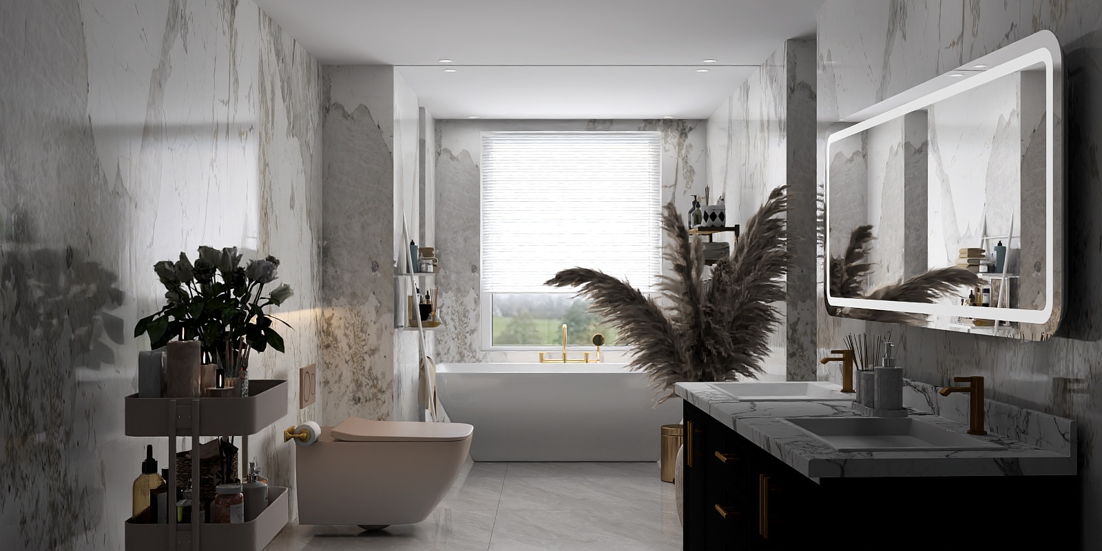 Dumiat 84 Inch Bathroom Vanity with Sink – Stylish White Vanity Bathroom with Storage Cabinet – Modern Bathroom Vanities with Double Vanity Sink & Carrara Marble Countertop