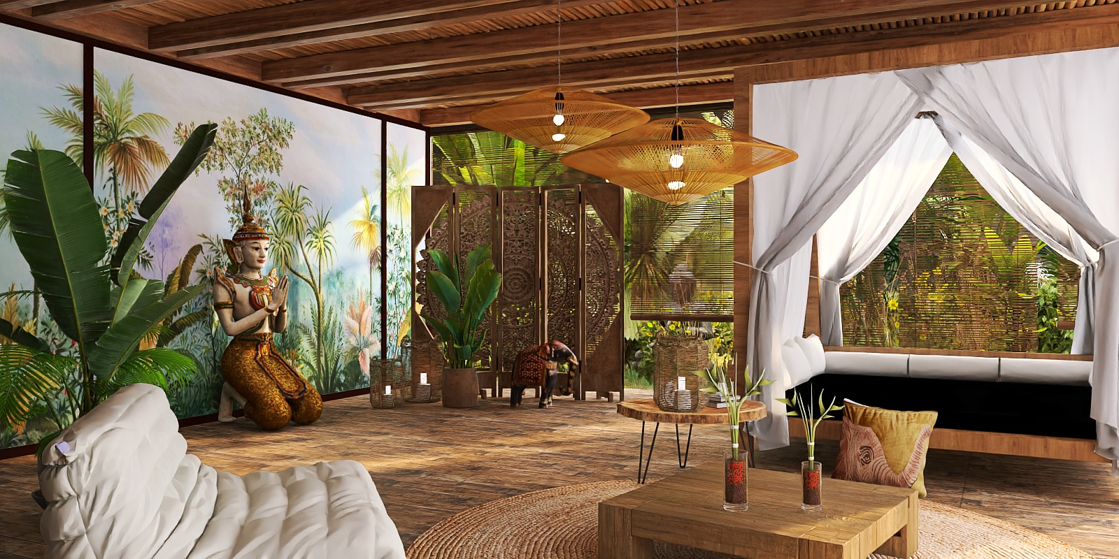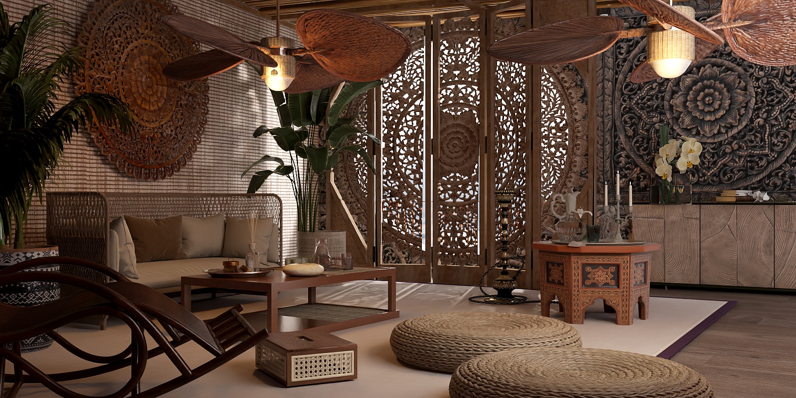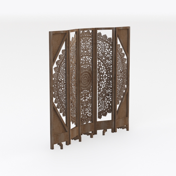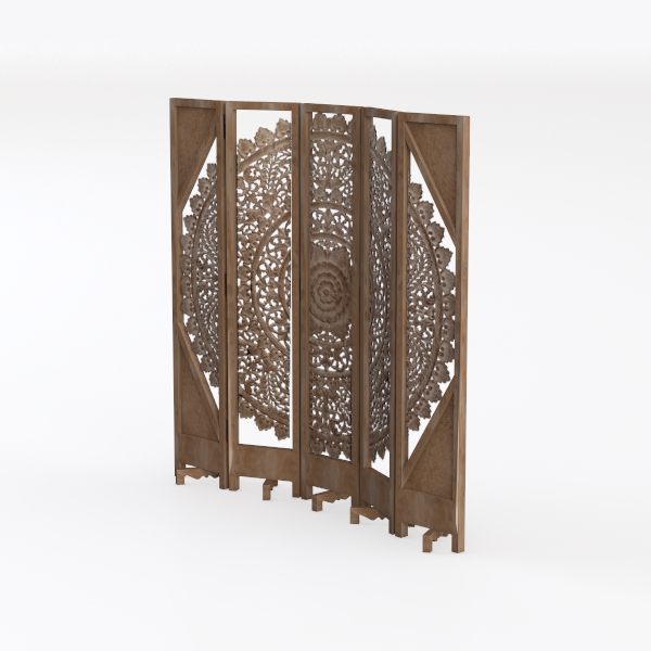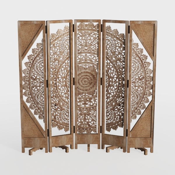 Drawing inspiration from traditional woodcarving art, this room divider features warm, intricately carved panels. Delicate floral and geometric patterns, with a central circular motif, create a soft interplay of light and shadow. Blending Eastern elegance with modern minimalism, it divides spaces beautifully, ideal for pairing with silk cushions and ceramic vases. Sturdy and artistic, it adds both privacy and openness to your home.