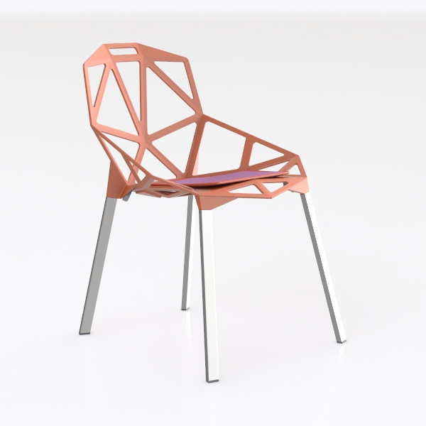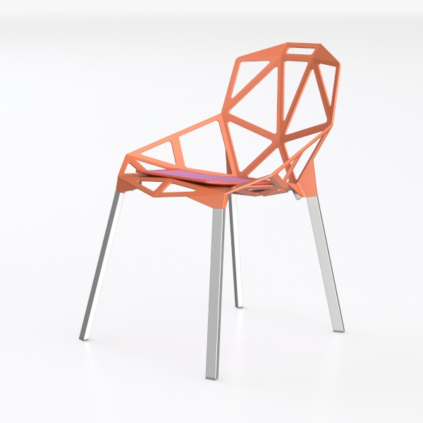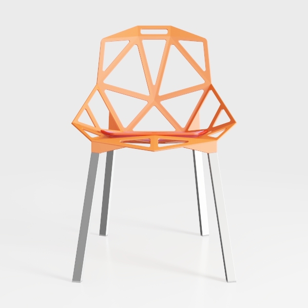 Inspired by geometric architectural patterns, this chair features a vibrant orange frame with intricate cutouts, creating a light, airy aesthetic. Sleek metal legs add a cool contrast, while the hollowed-out design offers breathability and the curved back/seat contours for comfort. Sturdy, it pairs well with minimalist or Scandinavian decor, perfect for dining or living spaces.