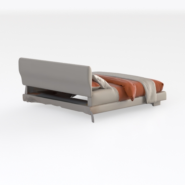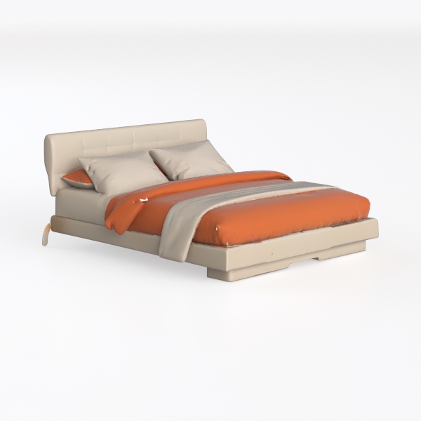Inspired by balancing minimalist elegance and cozy comfort, this bed features smooth, matte surfaces and soft, textured fabrics, creating a warm yet sleek vibe. Ideal for a modern bedroom, pairing beautifully with wooden nightstands and soft linen curtains, its curved headboard offers gentle support, while the neutral base keeps the focus on the vibrant orange bedding, enhancing relaxation.