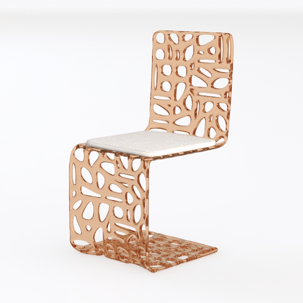 Design inspired by natural fluidity, the chair boasts a warm metallic sheen with intricate hollow patterns, casting dynamic light and shadow. Ideal for a modern dining space, it pairs beautifully with marble tables and velvet cushions. Its plush upholstered seat and ergonomic backrest ensure cozy, supportive comfort during meals.