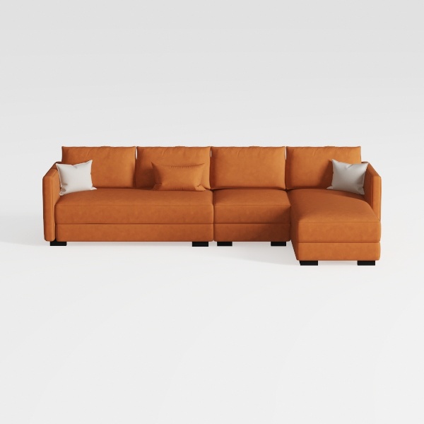 The focal point of this living space is a striking L-shaped sofa, bathed in a warm terracotta hue that evokes the cozy glow of a sunlit afternoon. Its design draws inspiration from the seamless blend of aesthetic elegance and everyday practicality, aiming to transform ordinary moments into serene, inviting experiences. The sofa’s soft, textured fabric feels surprisingly plush against the skin, with each cushion offering just the right balance of firmness and give—ideal for sinking into after a long day. Clean, uncluttered lines and sleek black legs create a modern silhouette, while the neutral background allows the sofa’s rich color to take center stage, making it a versatile piece that complements various decor styles.