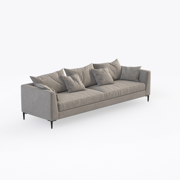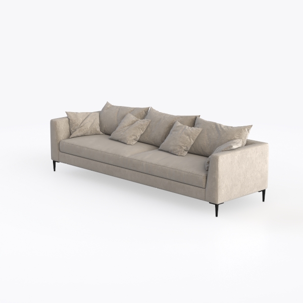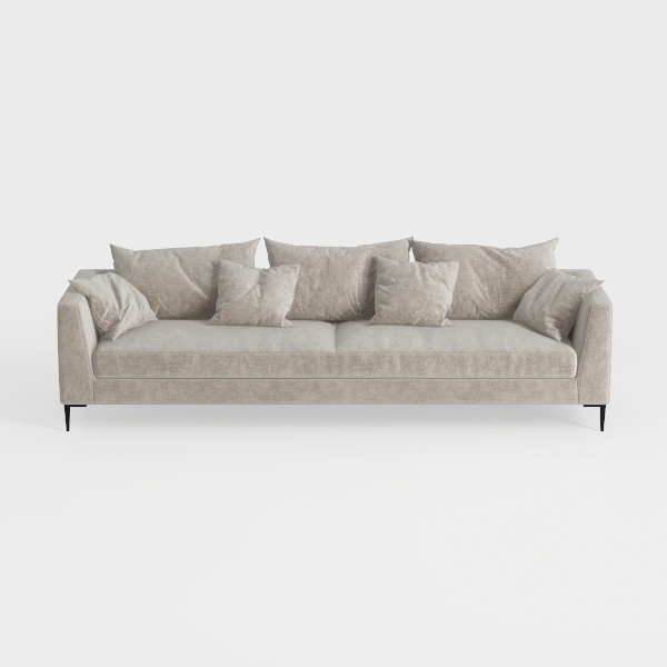 Crafted with a focus on serene minimalism, this sofa draws inspiration from the soft, billowing forms of natural clouds, reimagined into a modern living space essential. Its light taupe upholstery features a subtle, velvety texture that invites gentle touches, its matte finish reflecting soft ambient light to create a warm, inviting atmosphere. Clean, unadorned lines define the frame, with gently rounded armrests and a streamlined silhouette that balances comfort and elegance.