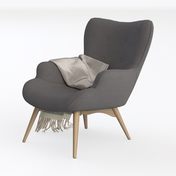 Blending mid-century modern charm with Scandinavian minimalism, this armchair features soft, textured gray upholstery with subtle button tufts, adding warmth. Light wood legs create a balanced, airy feel. Perfect for a cozy modern living room or serene reading nook, pairing with marble side tables and geometric rugs. Plush, deep seats and wide armrests offer exceptional comfort for long relaxation.