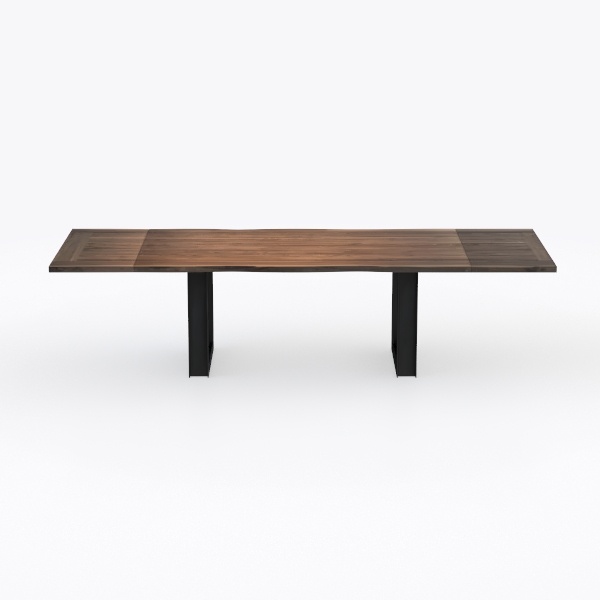 Inspired by organic wood grain patterns and minimalist architecture, this table features a warm, rich wood surface with a smooth touch. Its sleek black metal legs contrast beautifully, blending rustic warmth with contemporary elegance. Perfect for modern dining rooms or cozy living spaces, the spacious tabletop offers ample room for meals or gatherings, while sturdy legs ensure stability.