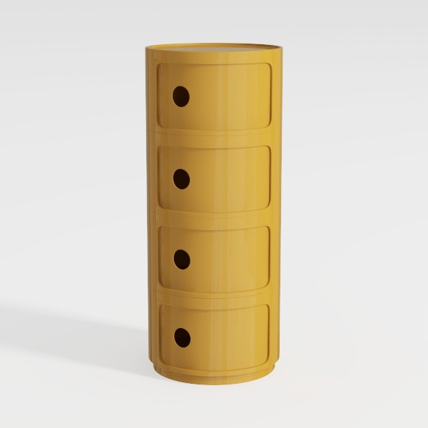 Inspired by organic curves and minimalist architecture, this cylindrical cabinet features a smooth, warm mustard finish with subtle texture. Its soft, rounded edges and soft shadow casting create a gentle, modern aesthetic. Perfect for modern, Scandinavian, or mid-century spaces, pair with wooden side tables and linen cushions. Four round pull drawers offer ample storage with smooth glide, blending style and practicality seamlessly.