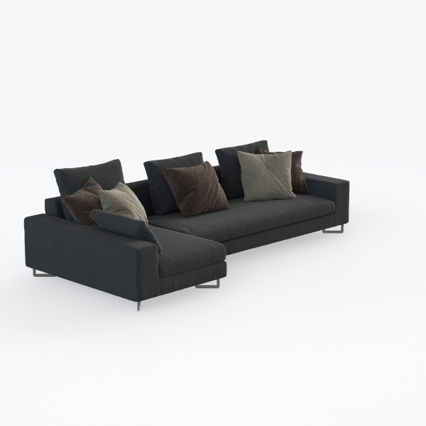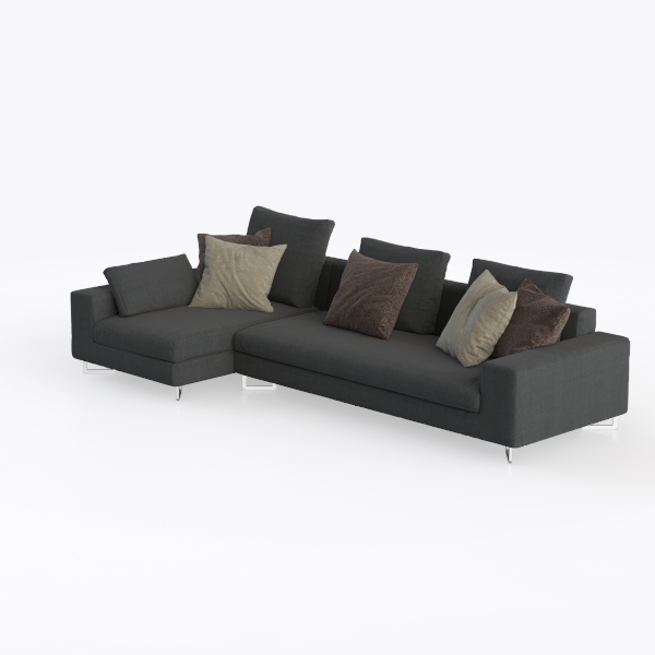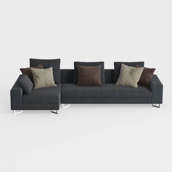 Crafted with a soft, textured fabric in a rich charcoal hue, the surface offers a cool yet tactile feel—breathable enough for casual use, yet sturdy enough to maintain its shape over time. The L-shaped silhouette features clean, unadorned lines, softened by gently rounded armrests that invite relaxation, while the generously filled cushions provide a plush, supportive seat that cradles the body. Sleek, chrome-finished metal legs elevate the design, adding a subtle modern edge without overwhelming the piece.
