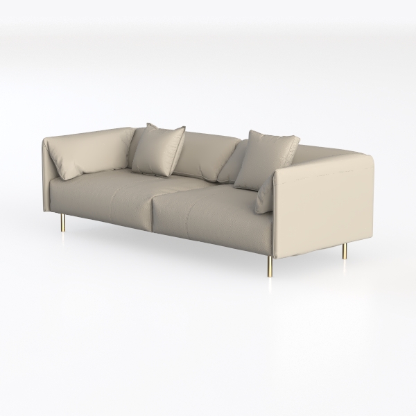 Perfect for modern minimalist, Scandinavian, or even mid-century modern living rooms, it pairs effortlessly with marble or terrazzo coffee tables, brass floor lamps, and light wood sideboards, elevating the room with a quiet luxury. The generously wide seat depth offers exceptional comfort, whether you’re curling up with a book or hosting friends, while the slim, metallic gold legs add a delicate lift, making the piece feel light and airy despite its substantial size.